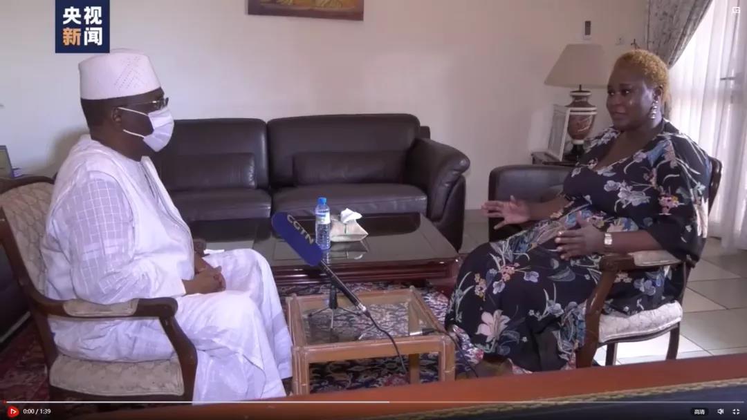 当地时间10日,总台报道员妮雅邬蕾采访西非国家经济共同体委员会主席让-克劳德·布鲁。