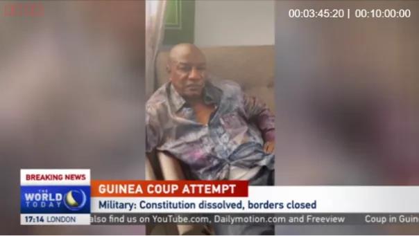 CGTN英语频道播出几内亚总统孔戴被控制画面。