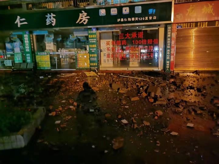 这是9月16日拍摄的地震发生后的泸县街道(手机照片)。新华社发