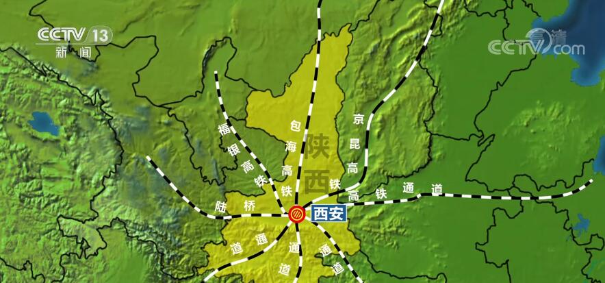 在陕西省的版图上,有从东北至西南的京昆高铁通道、从北至南的包(银)海高铁通道、从西北至东南的福银高铁通道、从东至西的陆桥高铁通道,4条高铁通道在西安交汇,形成了以西安为枢纽,覆盖全国的大“米”字形高铁网。目前郑西、大西、西宝、宝兰、西成、西银高铁已经建成投入运营,西延、西康建设正在紧张推进中,西十(西安到十堰)高铁建设前准备工作已经到最后阶段,开工在即。