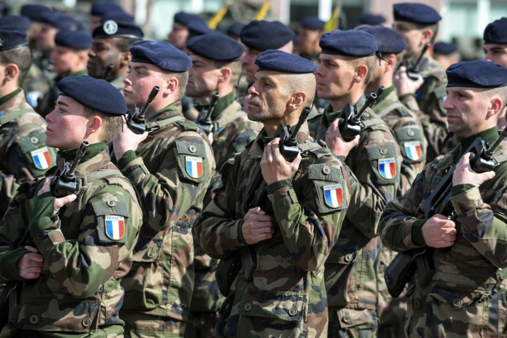 2017年4月20日,在爱沙尼亚北部塔帕陆军基地,法国士兵出席阅兵仪式。(新华社发,谢尔盖·斯捷潘诺夫摄)