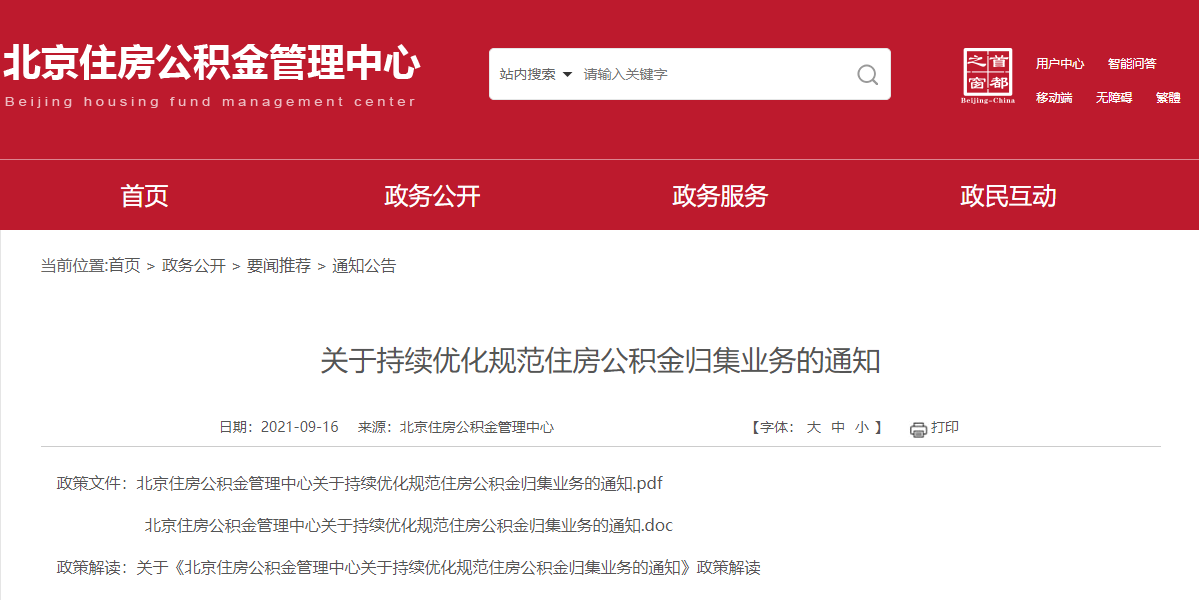 今天(16日),北京住房公积金管理中心发布《关于持续优化规范住房公积金归集业务的通知》。