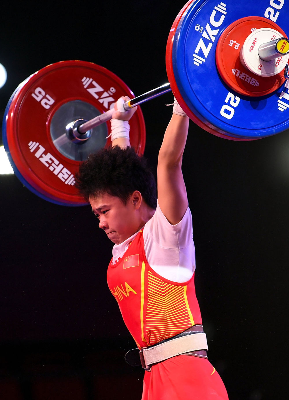 9月16日,第十四届全运会举重项目女子49公斤级决赛在陕西渭南举行。湖南队选手侯志慧在比赛中,她以抓举96公斤平世界纪录,挺举118公斤,总成绩214公斤超世界纪录的成绩获得冠军。