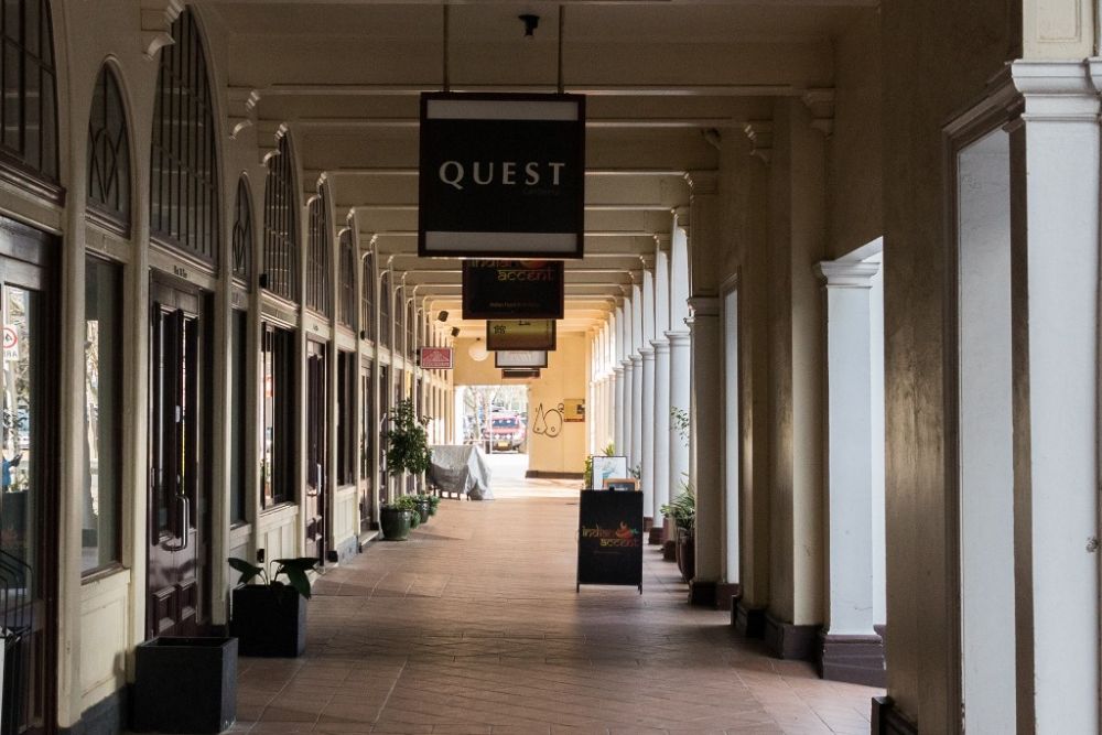 这是9月14日在澳大利亚堪培拉市中心拍摄的封城期间空荡荡的商业街。(新华社发 刘畅畅摄)
