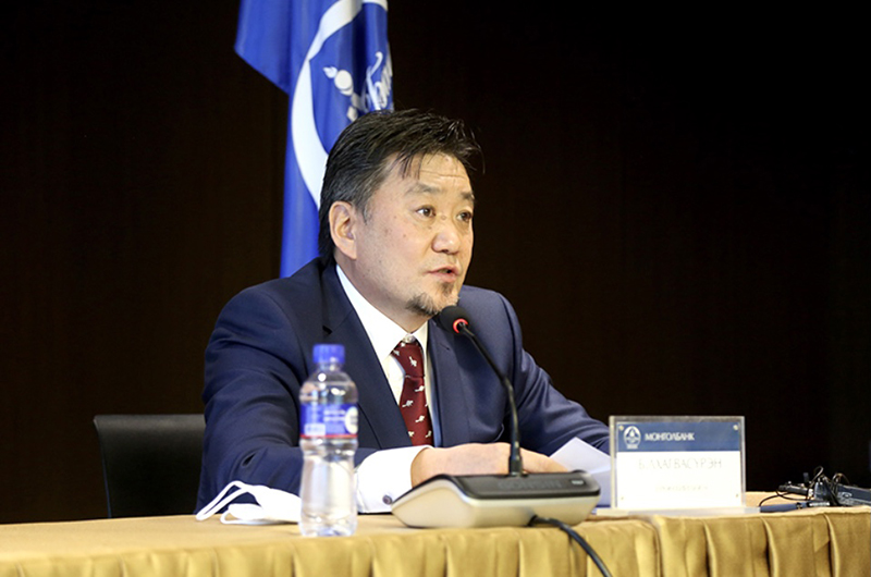 △蒙古国中央银行行长拉哈格瓦苏伦16日在新闻发布会上(图片来源:蒙古国中央银行官网)