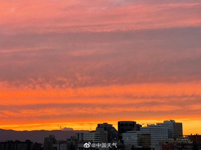 天空打翻了调色盘!北京绝美晚霞绚烂天际,好似彩色油画挂在天边。