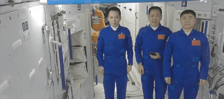 神舟十二号航天员撤离空间站,向地面表达感谢。