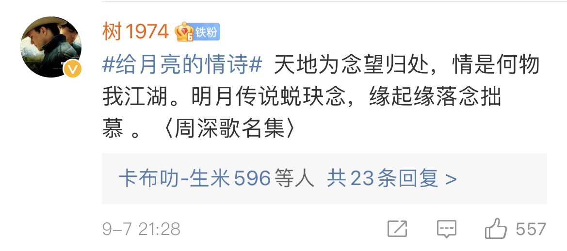 除此之外,今年秋晚还发起了“给月亮的情诗”活动,以中秋之“月”的意象为切入点,号召全民对月“表白”,吸引了众多网友参与。月亮,作为中秋节的经典意象,在每个国人心中都有着独特的意义。它是美好的化身,“月出皎兮,佼人僚兮”,诗经最早以明月喻佳人。同时,它也代表着思念,“举头望明月,低头思故乡”等诗句都表达着古人对于家乡故土的热爱与眷恋。