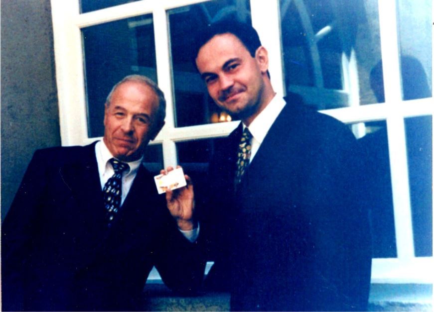 1996年,马克·拉叙斯(左)参加金普斯墨西哥工厂开工仪式。(受访者供图)