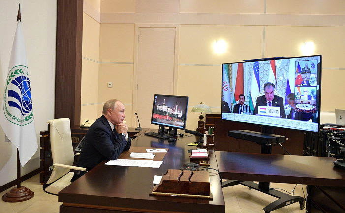 当地时间17日,俄罗斯总统普京以视频方式出席在塔吉克斯坦首都杜尚别举行的上海合作组织成员国元首理事会会议时称,针对阿富汗国内安全局势升级及美国和北约从该国撤军这一现实,上合组织国家应就阿富汗问题制定统一应对路线。