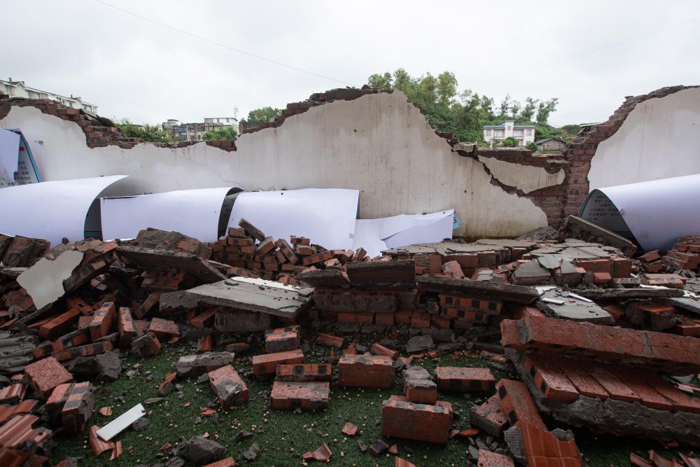 ↑ 这是9月16日在泸县福集镇大田社区拍摄的在地震中垮塌的墙体。