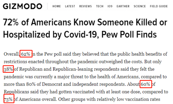 美国皮尤研究中心的最新民调结果显示,多达72%的美国受访者表示自己认识的人中有因患新冠肺炎住院或病亡者。然而在党派争斗和政治极化的影响下,美国公众对于疫苗接种和其他防疫限制措施的看法仍然存在明显分歧。