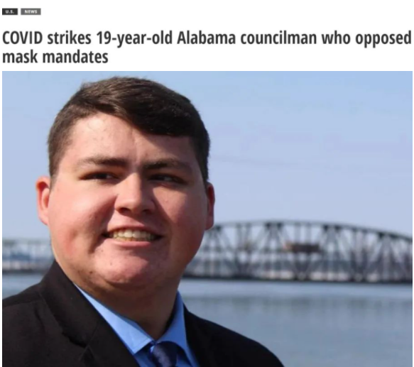 据美国媒体最新报道,亚拉巴马州迪凯特市19岁的市议员亨特·佩珀近日确诊感染新冠肺炎并入院治疗。此前,佩珀曾强烈反对佩戴口罩以及接种疫苗。