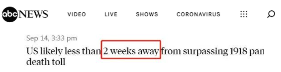 美国广播公司(ABC)日前警告,美国新冠肺炎累计病亡人数很可能在不到两周内超过1918年大流感。那次疫情共造成67.5万名美国人死亡。