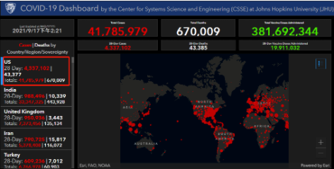 △约翰斯·霍普金斯大学官网疫情实时数据截图