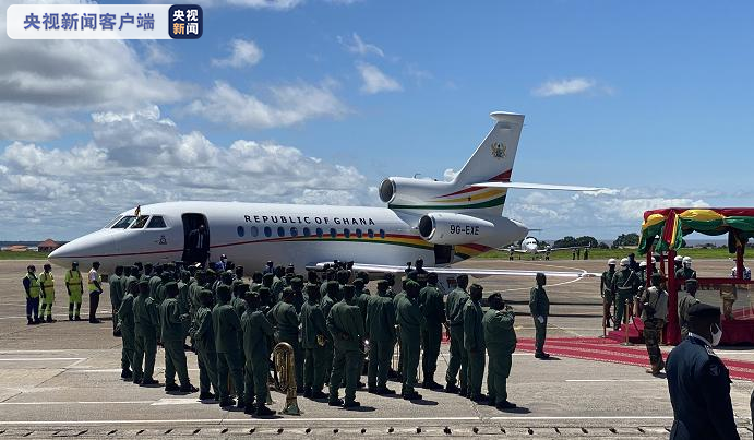 △加纳总统阿库福-阿多抵达几内亚首都科纳克里