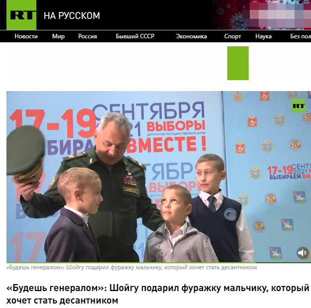 RT:“你将成为一名大将”:绍伊古向想成为一名空降兵的小男孩赠送军帽