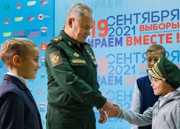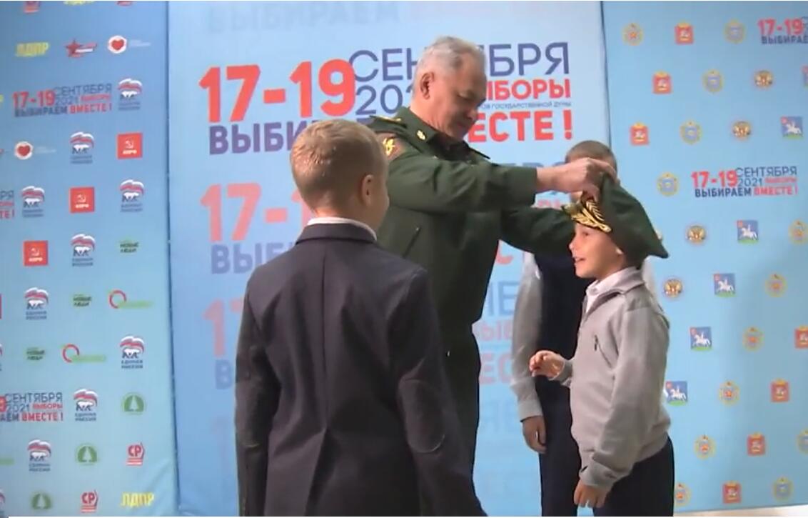 【环球网报道】俄罗斯国家杜马选举当地时间17日拉开帷幕。综合俄新社、“今日俄罗斯”(RT)等媒体报道,俄罗斯国防部长绍伊古当天在莫斯科州库宾卡市一个投票站投票后,将自己的军帽赠送给一名小男孩。