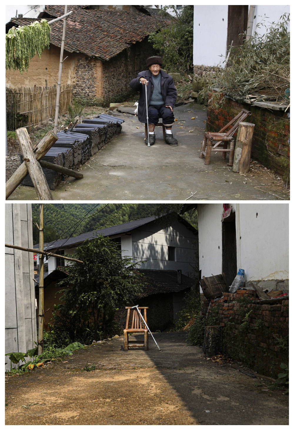 ↑拼版照片:上图为2015年4月19日,冯欢喜在丽水市莲都区太平乡长濑村家中(新华社记者韩传号摄);下图为2021年9月7日,冯欢喜在丽水市人民医院住院(程昌福 摄)。