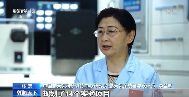 中国航天员科研训练中心研究员、航天员系统副总设计师 李莹辉:咱们这次航天医学实验领域一共有5个方向,规划了14个实验项目,其中有6个是在轨操作的。其实有些画面大家已经看到过,有8个是进行共享数据或者飞行前后采样的,我们目前看数据都完整有效,非常宝贵。