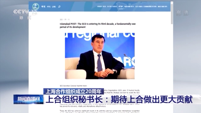 上海合作组织秘书长弗拉基米尔·诺罗夫近日发表文章指出,上合组织成立20年来,在政治、经济等各领域开展积极合作,取得了丰硕的成果,期待上合组织未来能为维护地区和世界的和平、稳定和共同发展做出更大的贡献。