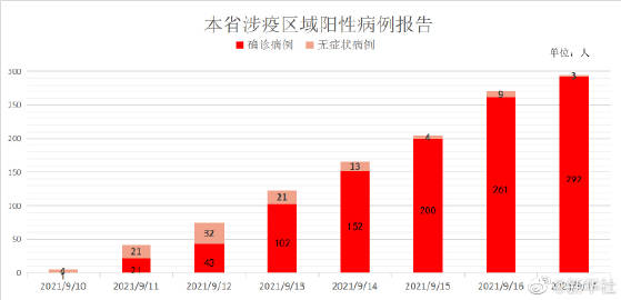 自9月10日以来,福建省累计报告本土确诊病例292例,目前住院292例,无死亡病例;现有本土无症状感染者尚在接受集中隔离医学观察3例(莆田市3例)。(记者邓倩倩,图表来源:福建省卫健委)