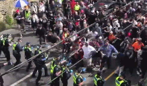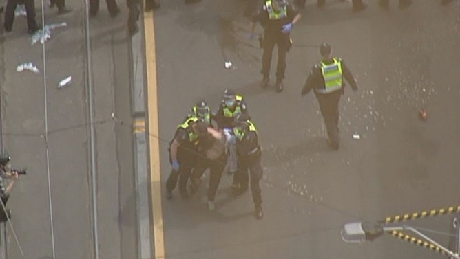 为避免更多示威者聚集,警方宣布暂停通往墨尔本市中心的火车、公交车等公共交通。