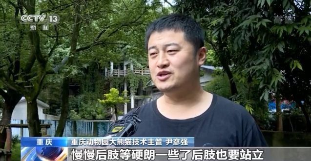 重庆动物园大熊猫技术主管 尹彦强:熊猫宝宝在100天的时候,它还是以睡眠为主,通过睡觉来加速它的生长发育。慢慢地它要爬得多一些了,再往后它要试着前肢先想站立,慢慢后肢等硬朗一些了,后肢也要站立,这是一个发育的过程,都是正常的。