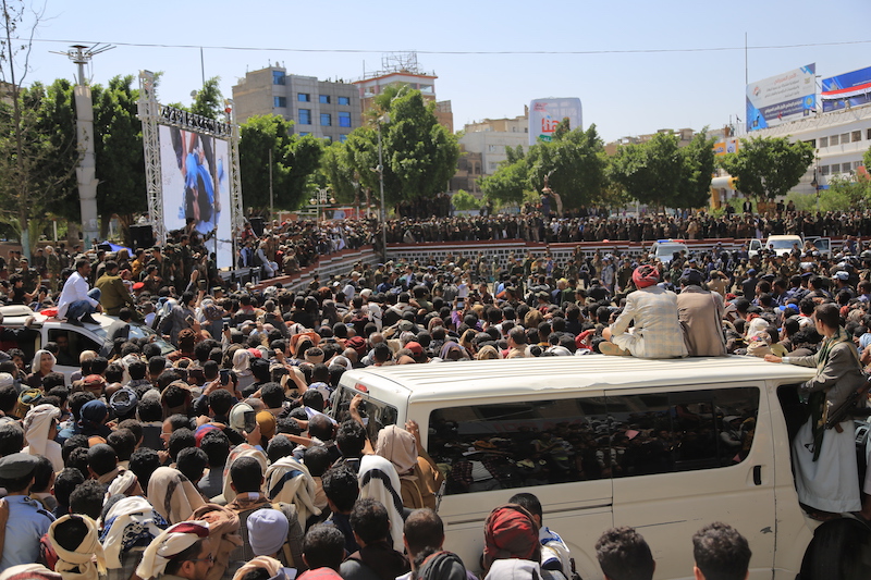当地时间9月18日,控制也门首都萨那的胡塞武装,在萨那市中心的解放广场,对9名人员执行处决,罪名是参与了针对也门胡塞武装最高政治委员会主席萨利赫·萨马德的袭击。