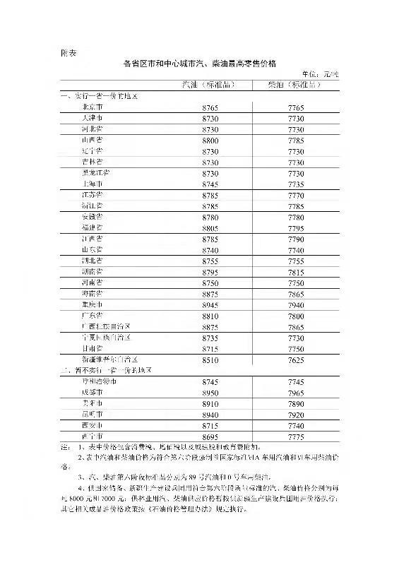 附:各省区市和中心城市汽、柴油最高零售价格