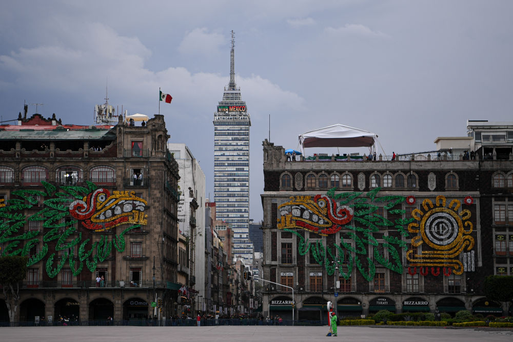 ↑这是9月15日拍摄的墨西哥首都墨西哥城的宪法广场。