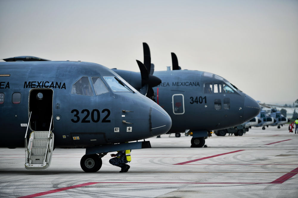 16日凌晨5点,军方的车辆将我们从首都军营的集合点带到位于墨西哥州的圣卢西亚空军基地。一路上,墨西哥空军的一名上尉对我们进行了飞行前各种注意事项的讲解。考虑到疫情和飞行要求,每个登机拍摄的记者首先必须接受军方的健康检测,检测通过后,平时不对外开放的空军基地对我们揭开了神秘的面纱:准备参阅的各式军机在停机坪已经整装待发。