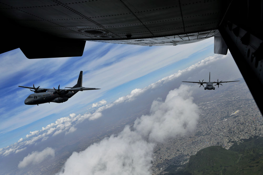 按照惯例,16日的阅兵式所有摄影记者会继续在宪法广场拍摄。今年,通过之前和墨西哥军方的反复沟通,我获得了难得的随参阅军机在空中拍摄的机会,后来得知,我也是唯一登机拍摄的外国记者。