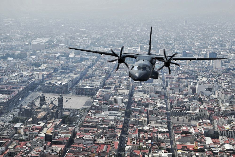 不久,飞行员通过耳麦提醒我们:飞机即将通过宪法广场。随后,熟悉的宪法广场第一次从空中映入眼帘,伴随着身边呼啸而过的狂风,我调整角度抓住机会记录下参阅军机飞临宪法广场的瞬间。从空中看去,没有了民众的宪法广场显得格外空荡,疫情对墨西哥的影响可见一斑。