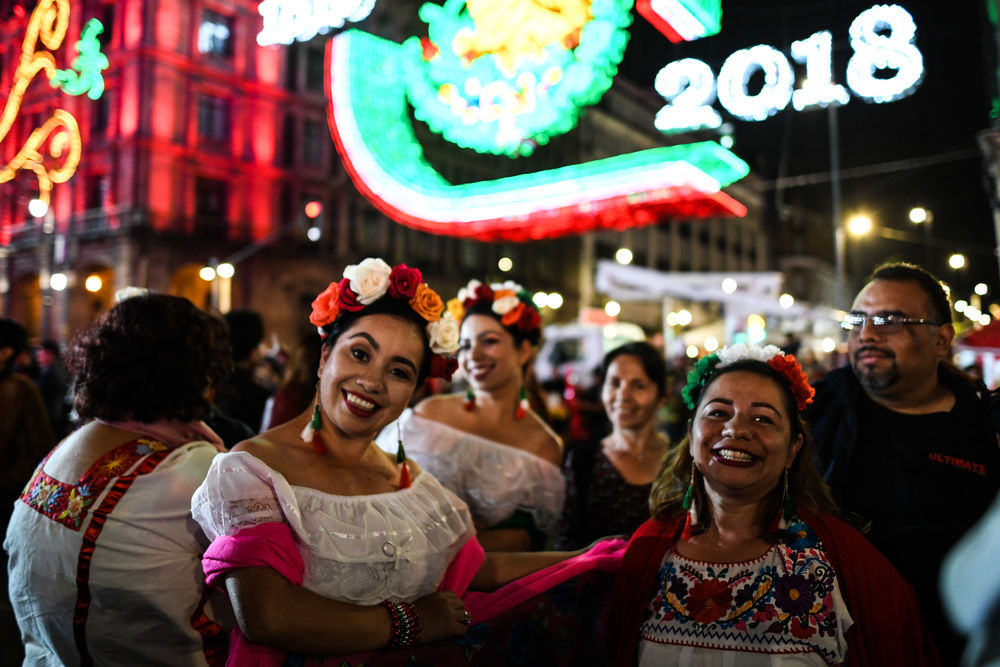 ↑2018年9月15日,在墨西哥首都墨西哥城中心的宪法广场,民众参加独立日庆祝活动,现场热闹非凡。