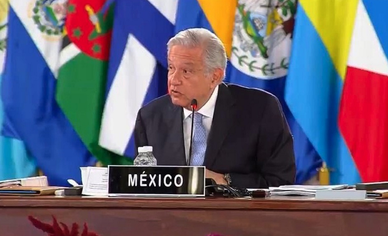 当地时间9月18日,墨西哥总统洛佩斯在墨西哥首都墨西哥城宣布第六届拉美和加勒比国家共同体(CELAC)领导人会议正式开幕。(总台记者 盛嘉迪 吕兴林)