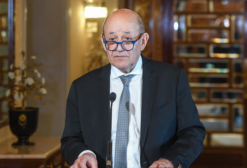 2020年1月9日,在突尼斯首都突尼斯市,法国外长勒德里昂在会见突尼斯总统凯斯·赛义德后对媒体讲话。新华社发(突尼斯总统府供图)