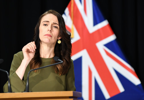 2020年8月17日,新西兰总理阿德恩在首都惠灵顿出席新闻发布会。 新华社记者 郭磊 摄