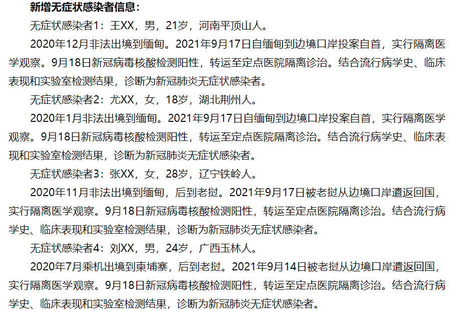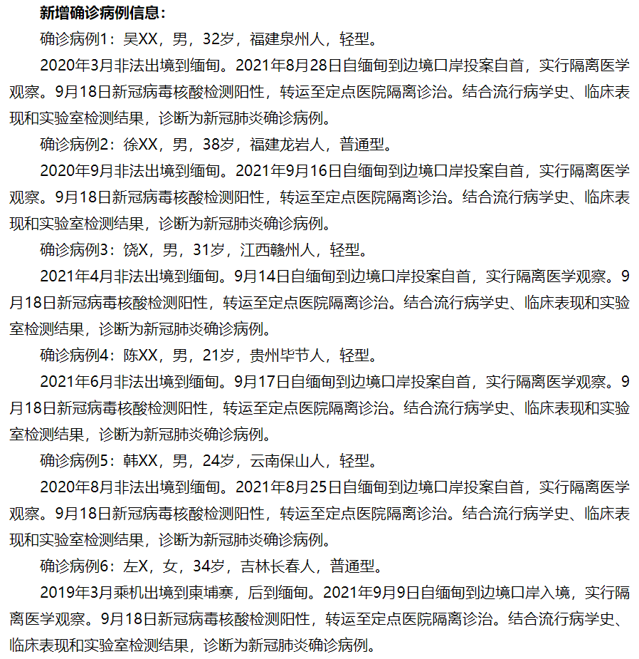 9月18日0时至24时,云南省新增境外输入新冠肺炎确诊病例9例、无症状感染者4例。确诊病例治愈出院27例,无症状感染者解除隔离医学观察3例。