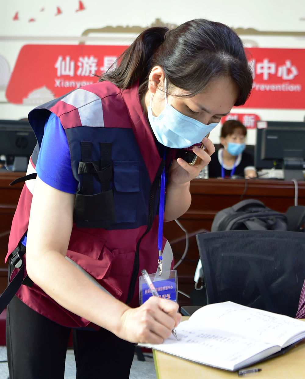 ↑9月18日,在莆田仙游县疾病预防控制中心,流调员领取指令后准备出发。