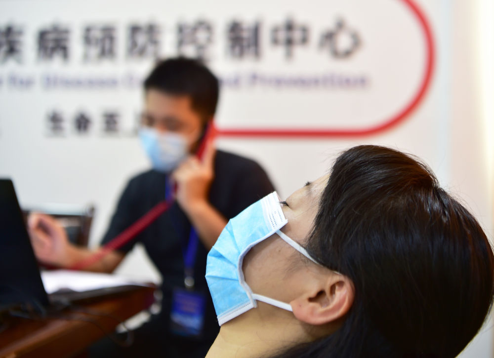 ↑9月18日,在莆田仙游县疾病预防控制中心,流调队员在领取流调指令。