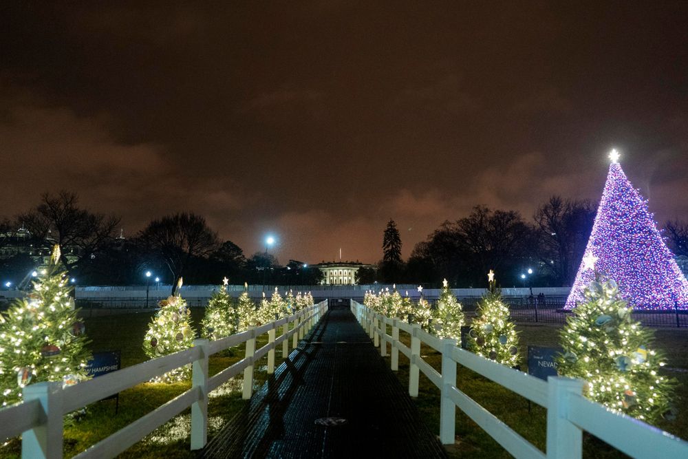 2020年12月24日在美国华盛顿拍摄的白宫和国家圣诞树。(新华社记者刘杰摄)