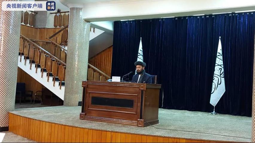 中央广播电视总台报道员在喀布尔新闻中心现场报道,当地时间19日上午,塔利班任命的喀布尔市市长哈米杜拉·努玛尼(Maulawi Hamdullah Numani)在喀布尔新闻中心举行记者会。