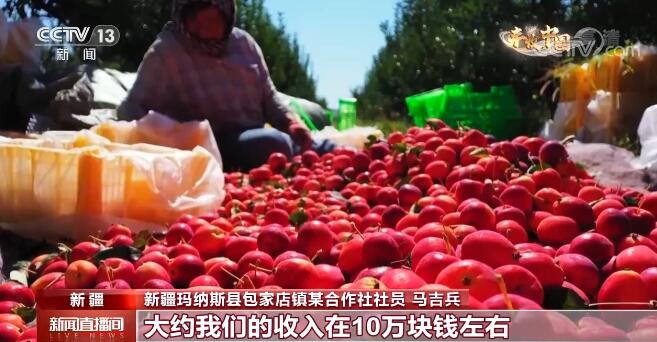 在新疆玛纳斯县包家店镇的锦绣海棠果种植基地,合作社的社员们正忙着采摘海棠果。马吉兵是玛纳斯县包家店镇黑梁湾村村民,2017年加入了当地的专业合作社并成为了管理员。今年,他管理种植的28亩锦绣海棠果已进入了盛果期,经济效益逐步显现。