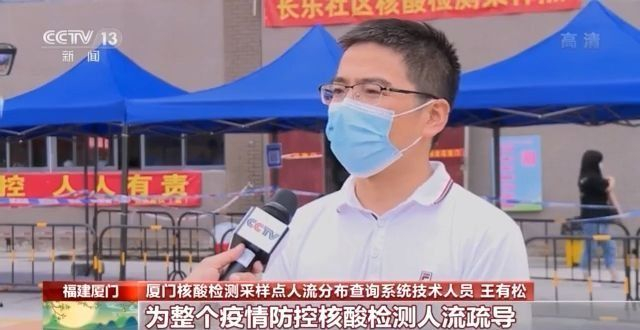 厦门核酸检测采样点人流分布查询系统技术人员 王有松:绿色一般来说排队时间是在五到十分钟,为整个疫情防控核酸检测人流疏导提供了比较有效的途径。
