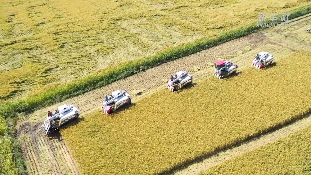 丰收啦!#吉林舒兰稻谷飘香收获忙#