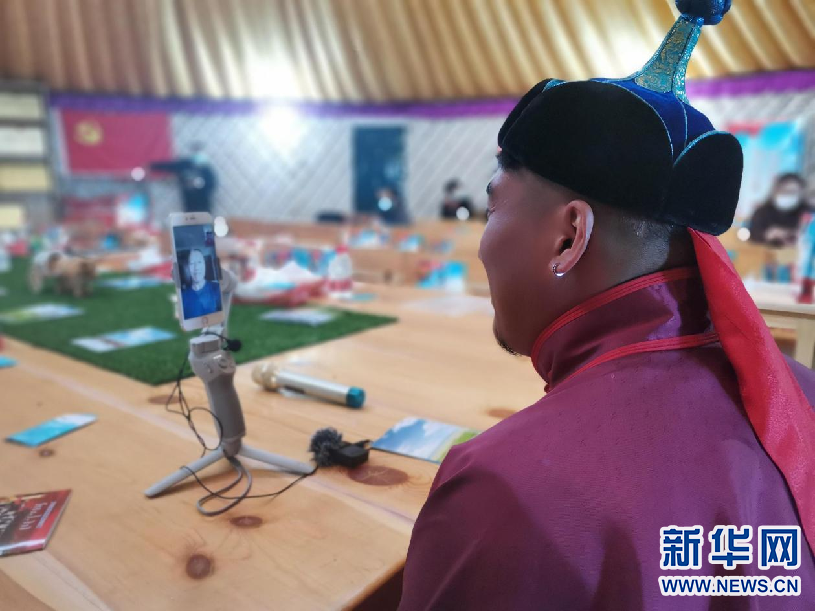 乃日勒和蔡乐铭视频聊天。新华网 李倩摄