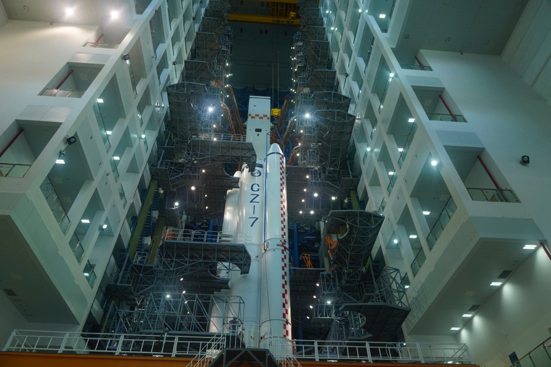 天舟三号货运飞船将于近日在文昌航天发射场择机发射,目前任务各系统已经做好了发射前的准备工作,用于发射天舟三号的长征七号遥四运载火箭也已经在发射塔架内整装待发。