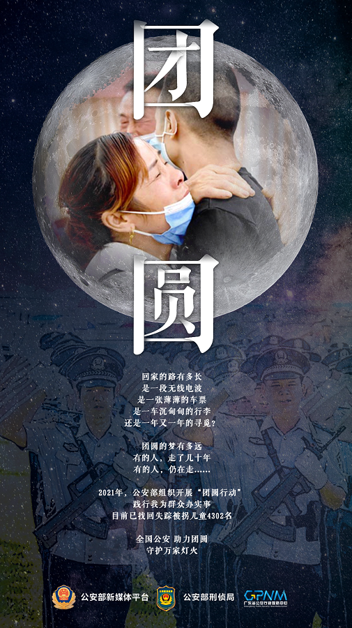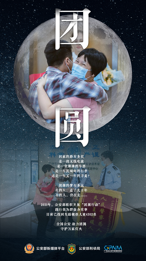 公安部“团圆”行动开展以来,截至目前已找回历年失踪被拐儿童4302名,侦破拐卖儿童积案206起,抓获拐卖犯罪嫌疑人543名,组织认亲宣传1800余场,取得阶段性明显成效。其中失踪被拐超过20年的1205名,超过30年的888名,40年的173名,50年的95名,超过60年的22名……(来源:公安部新媒体平台)