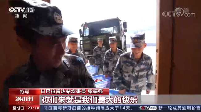 甘巴拉雷达站炊事员上士 张振强:兄弟们来就来,还送这么多东西,你们来就是我们最大的快乐。